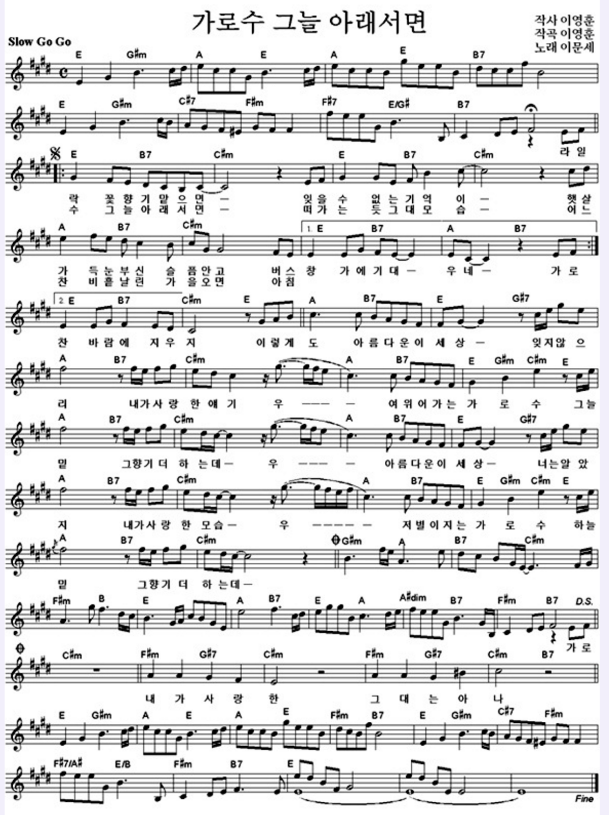 가로수 그늘 아래 서면 이문세 악보 듣기