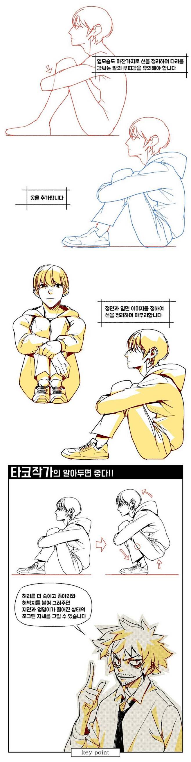 타코작가 On Twitter 쪼그려 앉은 자세 그리기