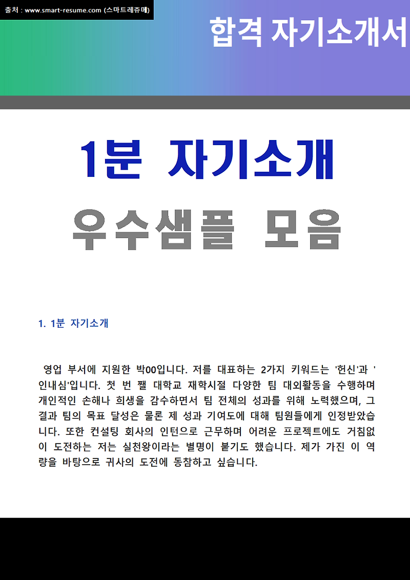 면접 1분 자기소개 예문 합격을 부르는 1분 자기소개