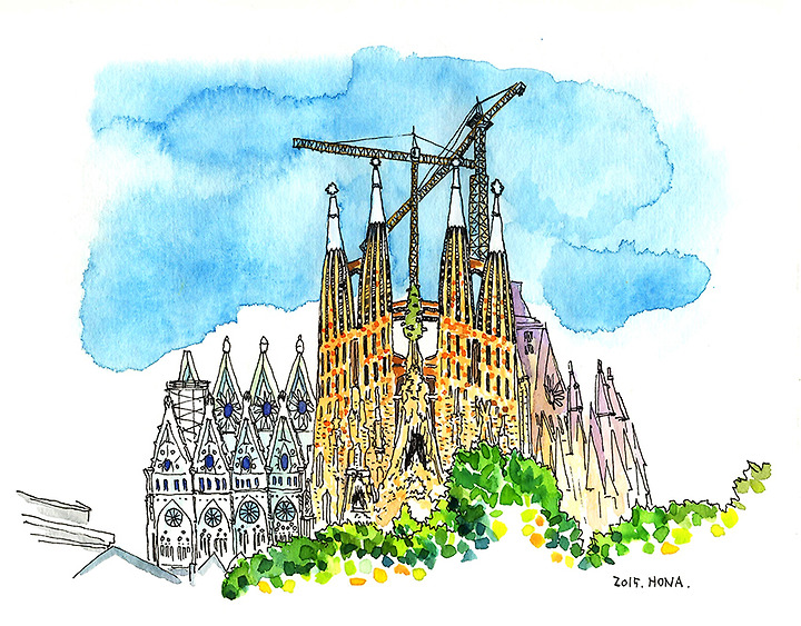일산취미미술 일산화실 라사임당의 스페인 풍경수채화 사그라다 파밀리아 성당 네이버 블로그