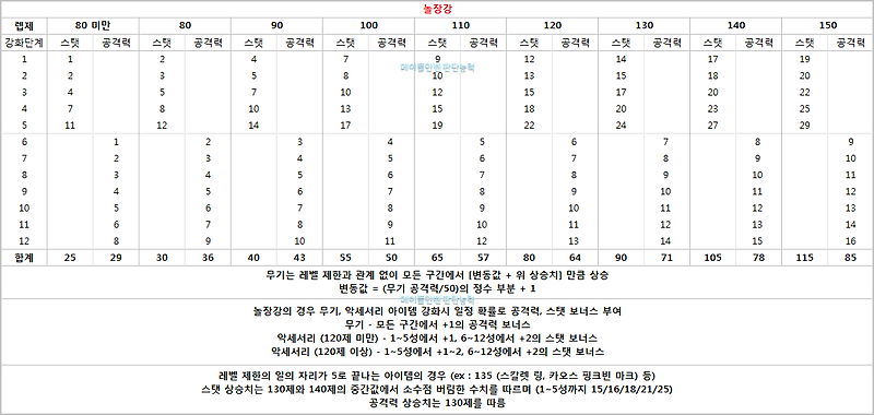 스타포스 놀장강 강화 상승치 정리 메이플 인벤