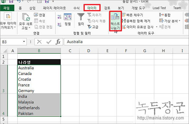 엑셀 팁 텍스트를 여러 개의 셀로 나누기 바다야크