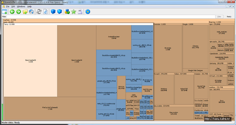 디스크 폴더별 사용량 확인 프로그램 Spacesniffer Snoopybox