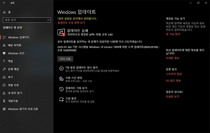 Kb4551762 업데이트 실패 이후 반복 업데이트 Microsoft 커뮤니티