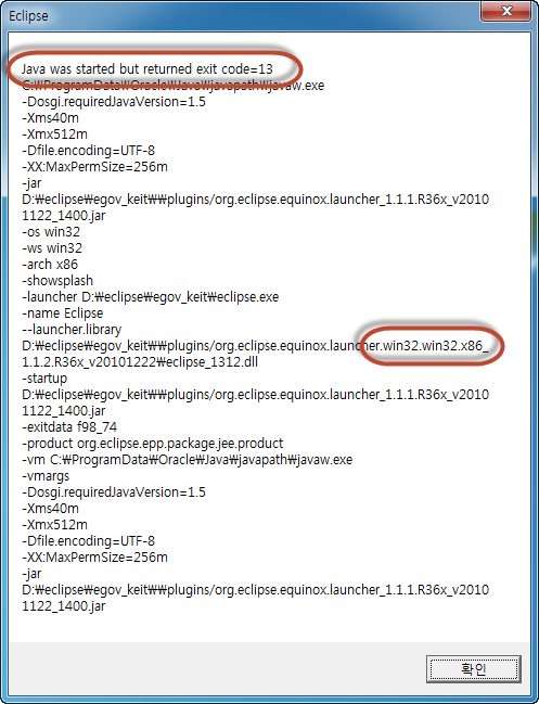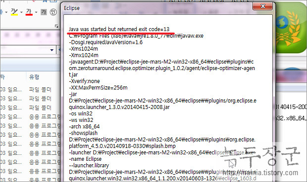 이클립스 Eclipse Exit Code 13 Error 해결방법 무차별 대량 비난