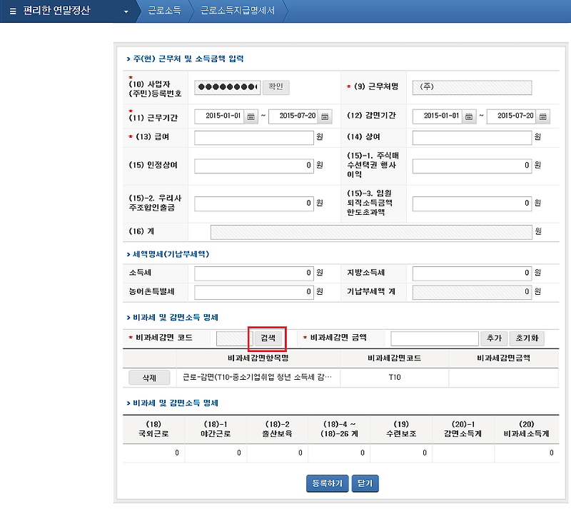 중소기업소득세감면 연말정산 청년 소득세감면신청 방법 및 소득세감면신청서 작성 국세청홈텍스 경정청구 신청 네이버 블로그