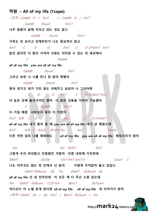 멜로디 악보 박원 All Of My Life 멜로디 코드 가사 네이버 블로그