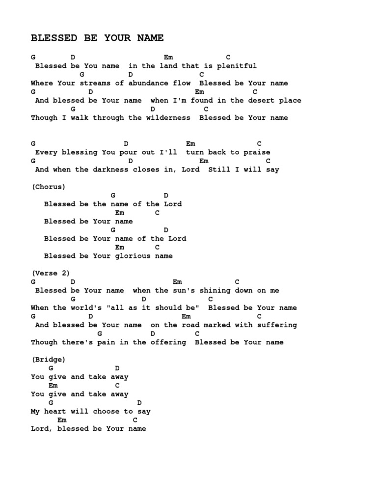 Wedding Hymns And Songs Blessed Be Your Name Lyrics Chords And Pdf