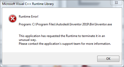 Diese Anwendung Hat Die Laufzeit Angefordert Um Sie Auf Eine Ungewohnliche Weise Zu Beenden Beim Offnen Des Inhaltscenter Editors In Inventor Inventor 2019 Autodesk Knowledge Network