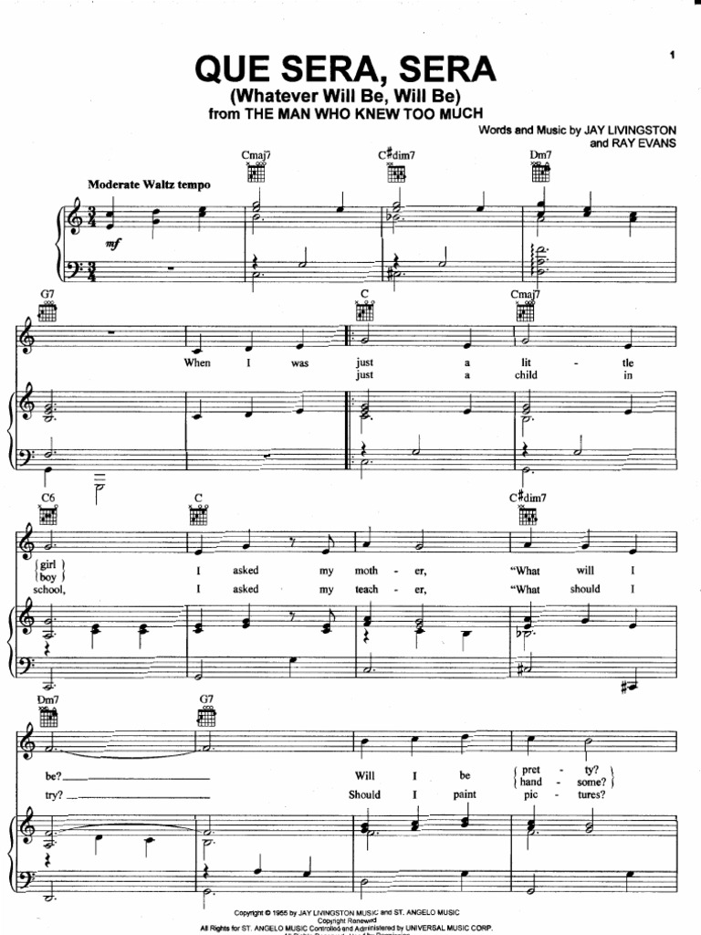 Doris Day Que Sera Sera Sheet Music Pdf Free Score Download