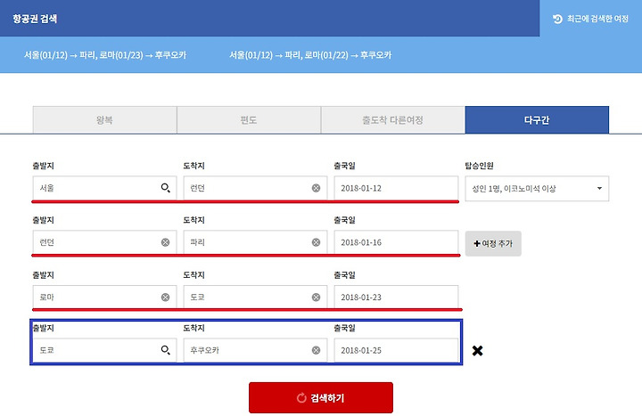 오사카시 Osa 출발서울특별시 Sel 행항공권
